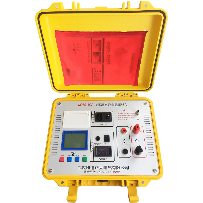 KDZR-10A變壓器直流電阻測試儀是變壓器、互感器、電抗器、電磁操作機(jī)構(gòu)等感性線圈制造中半成品、成品出廠試驗(yàn)、安裝、交接試驗(yàn)及電力部門預(yù)防性試驗(yàn)的必測項(xiàng)目,能有效發(fā)現(xiàn)感性線圈的選材、焊接、連接部位松動、缺股、斷線等制造缺陷和運(yùn)行后存在的隱患。為了滿足感性線圈直流電阻快速測量的需要,武漢凱迪正大電氣有限公司利用自身技術(shù)優(yōu)勢研制了KDZR-10A變壓器直流電阻測試儀采用全新電源技術(shù),具有體積小、重量輕、輸出電流大、量程寬、數(shù)字顯示、內(nèi)部鋰電池供電等特點(diǎn)。整機(jī)由單片機(jī)控制,自動完成自檢、數(shù)據(jù)處理、顯示等功能,具有自動放電和放電指示功能。儀器測試精度高,操作簡便,可實(shí)現(xiàn)直阻的快速測量。