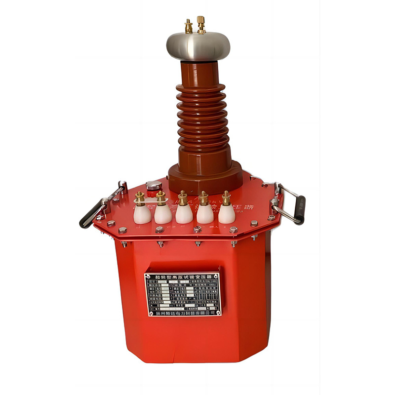 超輕型試驗變壓器為戶內式設備,鐵芯采用優(yōu)質冷軋取向硅鋼片,結構為芯式、橫式放置,芯柱上同心地裝有低壓繞組、測量繞組、屏蔽、高壓繞組。高壓繞組為多層寶塔式梯形結構、低壓繞組為圓筒式結構,屏蔽連同鐵芯一起接地。油箱底部設有移動腳輪(5kVA以下無腳輪),可在地面實時移動,便于實驗室和野外現(xiàn)場作業(yè)。