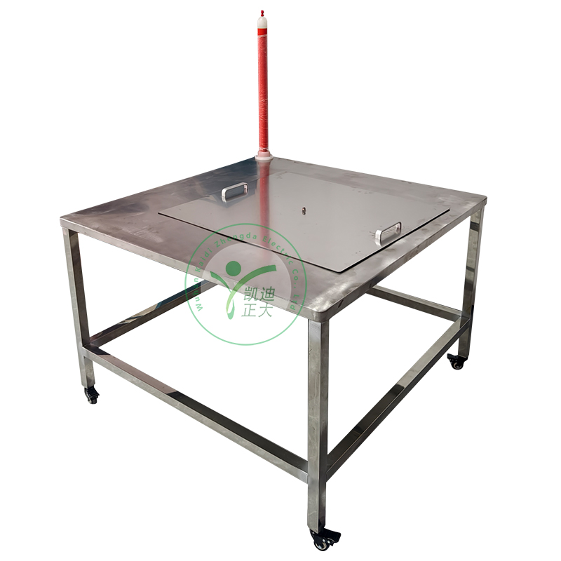 本裝置依據 DL/T976-2017 電力行業(yè)標準研發(fā),適用于絕緣衣、絕緣褲、絕緣披肩、絕緣套袖、絕緣毯等防護用品的工頻耐壓測試,支持 0 至 50kV 多電壓等級檢測 。采用不銹鋼框架, 電極由不銹鋼材質制成。