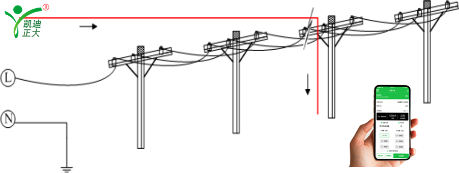 1.1.1定點(diǎn):當(dāng)確定故障區(qū)段后,主機(jī)輸出的信號(hào)將沿線路經(jīng)故障點(diǎn)流入大地(如下圖),根據(jù)此特點(diǎn)即可采用二分法進(jìn)一步定位故障。