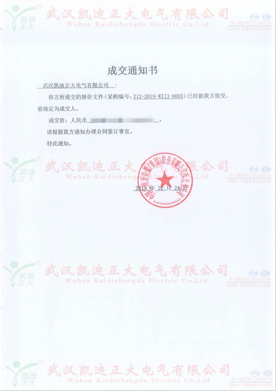 2020年上班的第一天收到中國三峽新能源(集團)股份有限公司西北分公司,采購編號:212-2019-WZJJ-0003的中標通知書。友好的合作為我司2020年開啟了新的啟程,“玖”字開頭更是中華習俗千年的好兆頭,長長久久、紅紅火火。祝愿兩家公司的精誠合作,為中國電力事業(yè)在新的一年打下堅實的基礎,在未來的一年里再創(chuàng)輝煌。