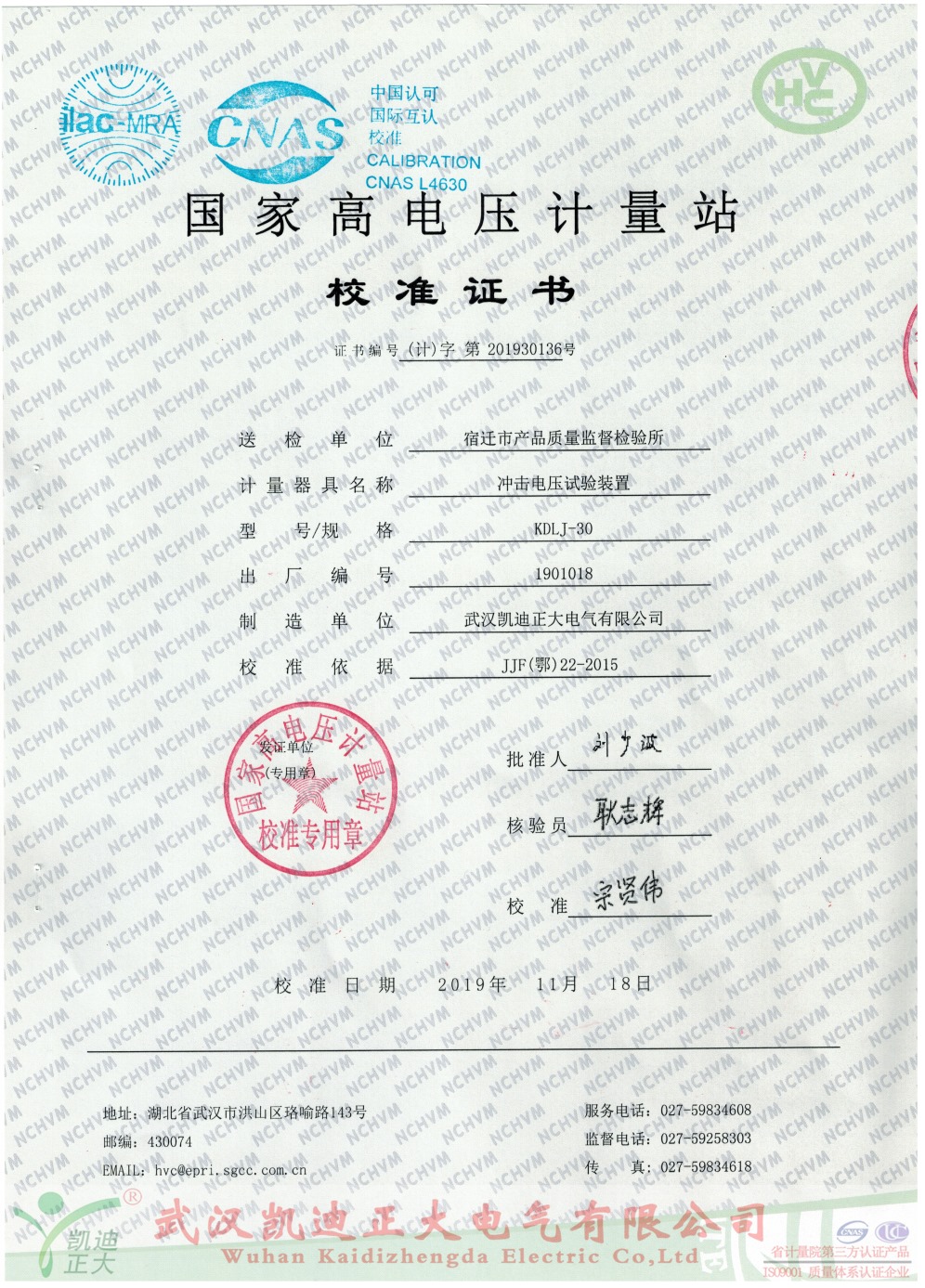 我司以最高分獲得評標(biāo)方的認可,中標(biāo)低壓成套開關(guān)設(shè)備檢測:KDHL-100A接觸電阻測試儀、KD305絕緣電阻測試儀、KDLJ-30kV沖擊電壓試驗裝置、KDWS-82大電流溫升試驗臺、KDYDJ工頻耐壓試驗裝置(3kvA50kV)、KDGK-F機械特性綜合測試儀。同時,我司設(shè)備獲得武漢市計量檢測研究院檢定、校準(zhǔn)合格。KDLJ-30kV沖擊電壓試驗裝置獲得國家高電壓計量站校準(zhǔn)證書:證書編號(計)字第201930136號,送檢單位:宿遷市產(chǎn)品質(zhì)量監(jiān)督檢驗所。校準(zhǔn)依據(jù):JJF(鄂)22-2015.