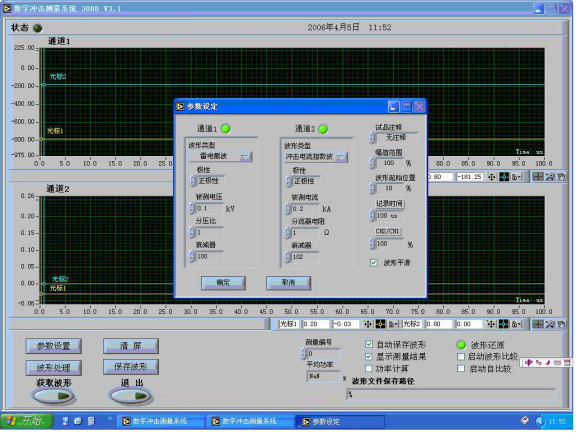 10-2沖擊電壓電流波形自動(dòng)測(cè)量記錄分析軟件操作畫(huà)面:
