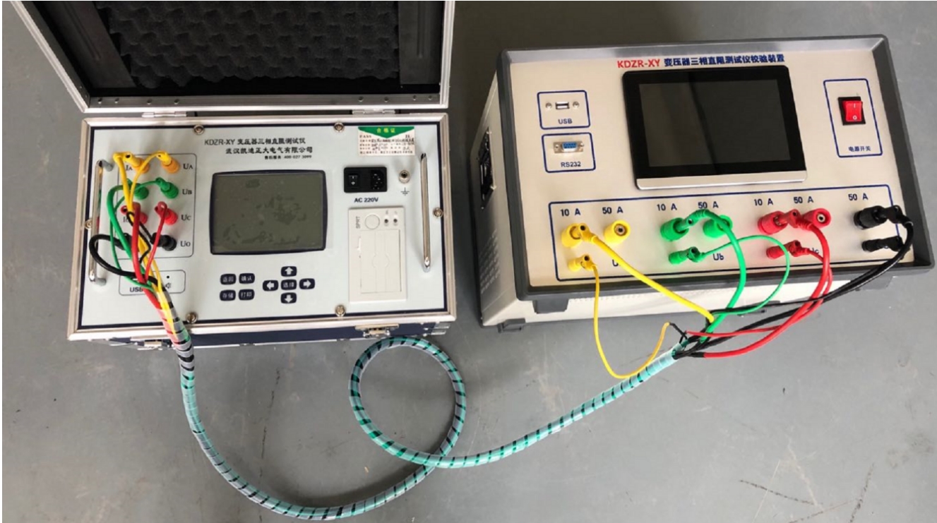 按照以上方法設(shè)置好ABC三相電阻值,等待10秒以上,便可開始對直阻測試儀進(jìn)行校驗(yàn)。