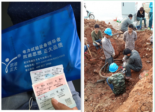 李工用KD-216A高壓電纜故障檢測(cè)儀、KDYDJ工頻耐壓操作箱、油浸式試驗(yàn)變壓器、脈沖高壓電容、KD305數(shù)顯絕緣電阻測(cè)試儀設(shè)備,得于精湛的技術(shù),良好的電力檢測(cè)設(shè)備,終于在6月23日中午之前,將電纜故障就找到了。最后,柿莊南采氣廠的電力得以全線恢復(fù)。設(shè)備部張部長(zhǎng)對(duì)我司的售后服務(wù)表示滿意,為用戶排憂解難給予贊美。