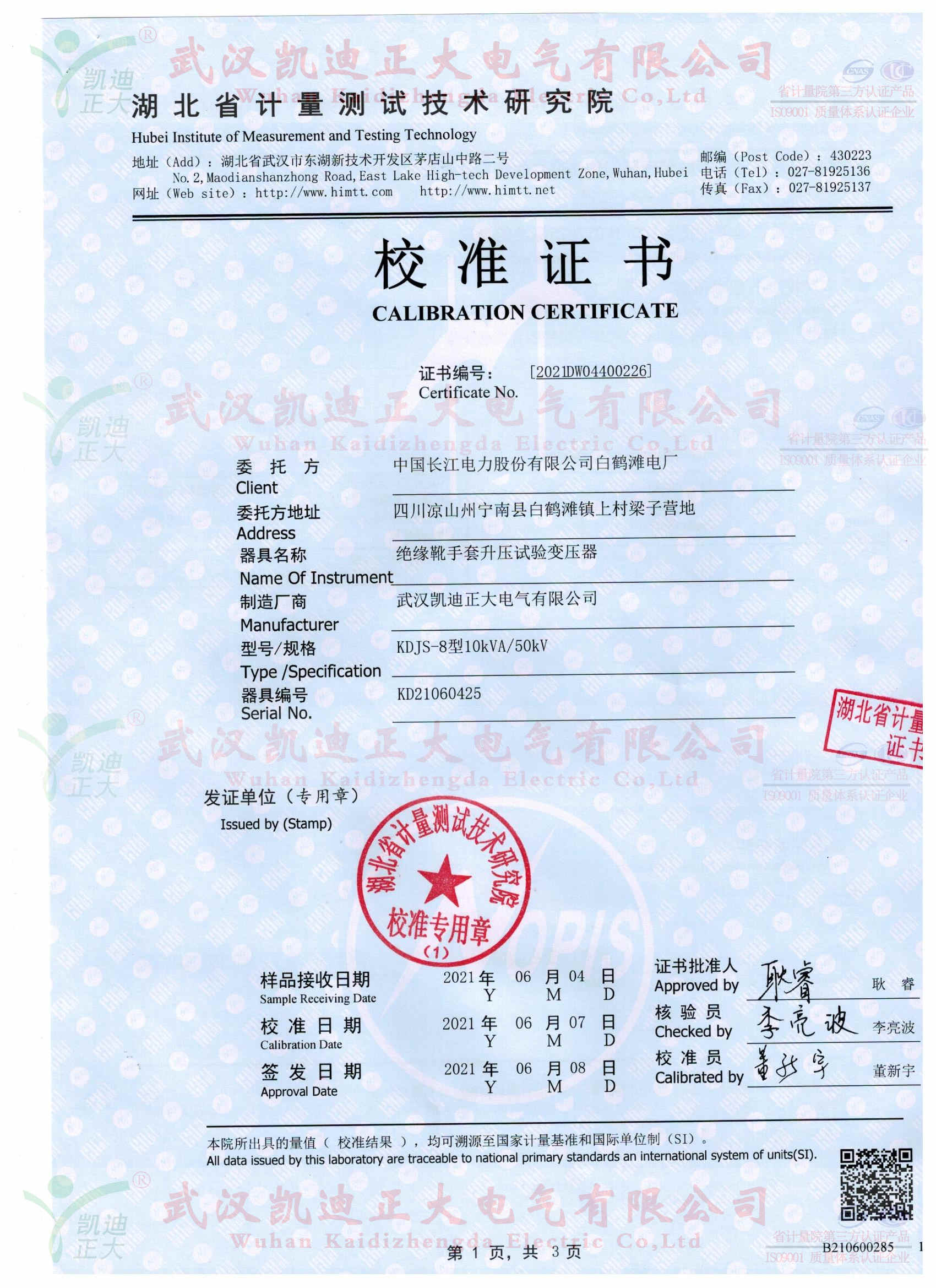 KDJS-8自動(dòng)絕緣靴手套耐壓泄漏電流測(cè)試儀獲得湖北省計(jì)量測(cè)試技術(shù)研究院校準(zhǔn)證書(shū),證書(shū)編號(hào)《2021DW04400226》,采用FRC-150M數(shù)字高壓表檢定電壓合格、產(chǎn)品各項(xiàng)指標(biāo)均符合國(guó)標(biāo)的要求。按《電力安全工器具預(yù)防性試驗(yàn)規(guī)程》要求對(duì)絕緣鞋、絕緣手套等安全工器具進(jìn)行智能化絕緣耐壓試驗(yàn),絕緣靴及絕緣手套耐試驗(yàn)周期為半年,試驗(yàn)過(guò)程中不允許擊穿,同時(shí)絕緣靴絕緣絕緣手套泄漏電流不大于限定值。產(chǎn)品適用于大多數(shù)與電力相關(guān)行業(yè)。