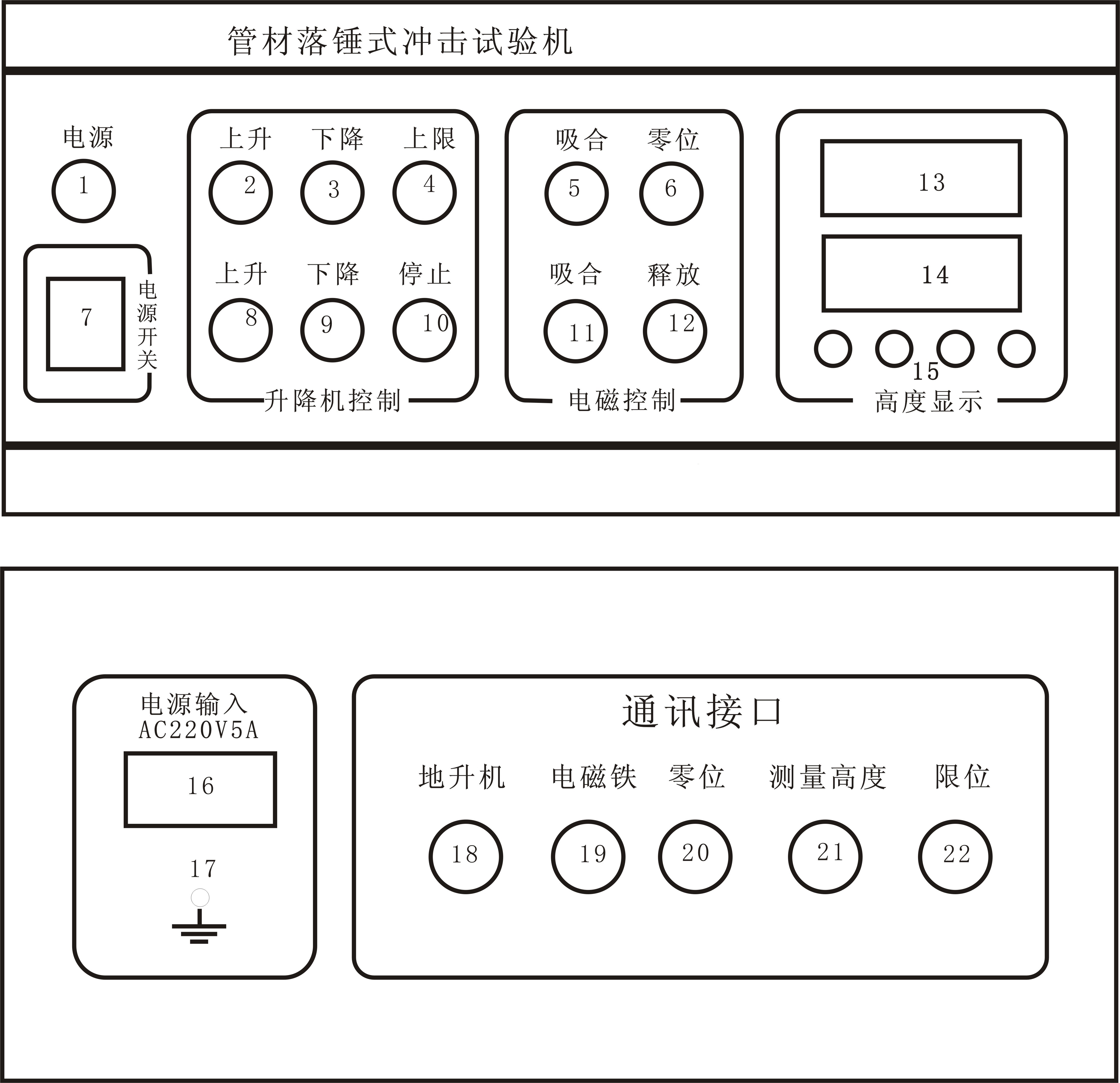 18、19、20、21、22、通訊接口,與試驗機通訊。