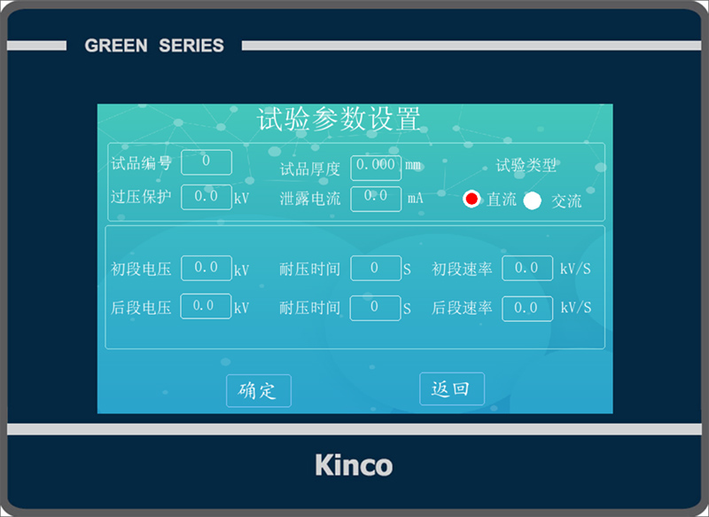 瞬時(shí)升壓模式:1、輸入相應(yīng)的試品參數(shù)及試驗(yàn)類型;