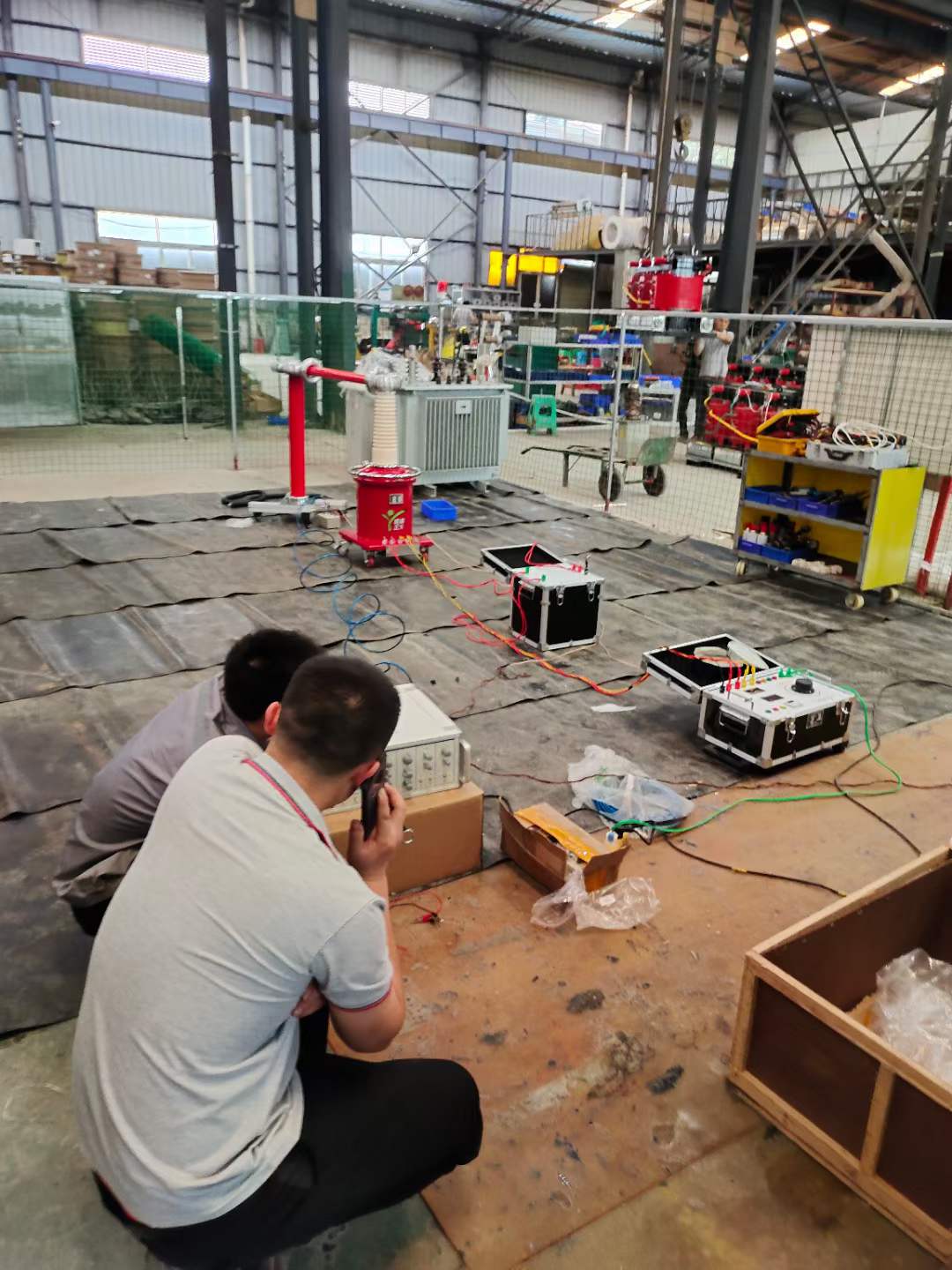 抵達(dá)現(xiàn)場后王工先與客戶細(xì)心講解了儀器的特點(diǎn)和使用方法,之后進(jìn)行測(cè)試前的設(shè)備線路連接和被試絕緣油樣品取樣工作。 王工在確認(rèn)各項(xiàng)準(zhǔn)備工作無誤后開始與客戶進(jìn)行絕緣油樣品測(cè)試,測(cè)試完成后進(jìn)行油介質(zhì)損耗測(cè)試。 在王工耐心的指導(dǎo)下,客戶完成了本次被試絕緣油樣品的油介電強(qiáng)度和油介質(zhì)損耗試驗(yàn)。然后進(jìn)行變壓器負(fù)載試驗(yàn)及無局放耐壓試驗(yàn)指導(dǎo),一直忙到晚上。最終,成功完成客戶的培訓(xùn)指導(dǎo)工作,客戶對(duì)此次技術(shù)指導(dǎo)培訓(xùn)工作非常滿意。