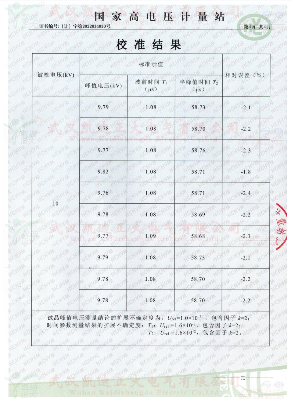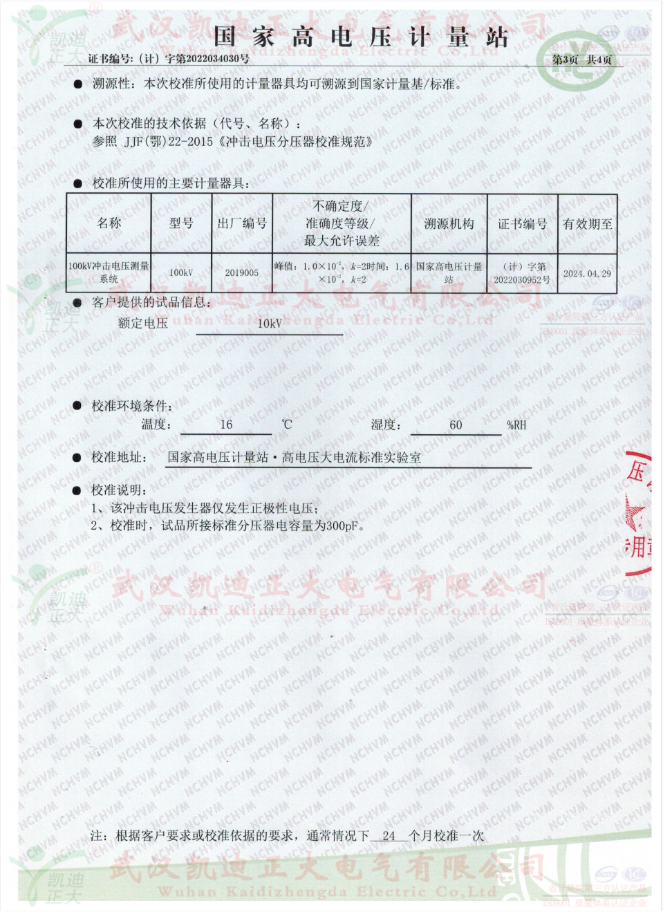 KDLJ-30雷電沖擊電壓發(fā)生裝置獲得國家高電壓計(jì)量站(武高所)校準(zhǔn)證書(計(jì))字第2022034030號(hào),校準(zhǔn)依據(jù)參照J(rèn)JF(鄂)22-2015檢定合格,符合標(biāo)準(zhǔn)。10kV沖擊電壓發(fā)生裝置用于充電樁,新能源汽車,太陽能,低壓成套,低壓電器,高低壓開關(guān)等的檢測(cè)雷電沖擊試驗(yàn)。
