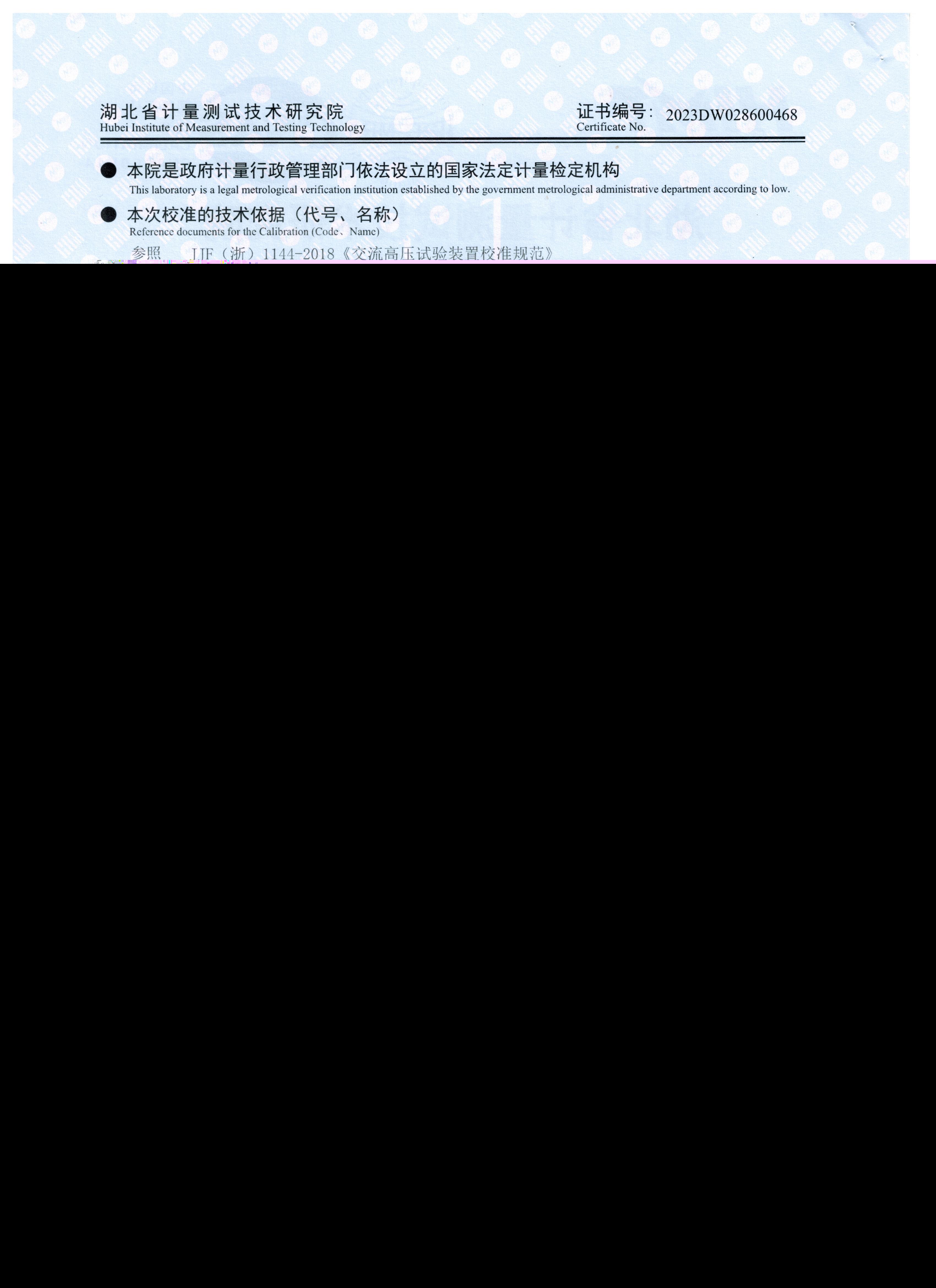 參照 JJG(浙)1144-2018《交流高壓試驗裝置校準規(guī)范》 檢定要求,KDXZ-II-108kVA/108kV 變頻串聯(lián)諧振試驗裝置獲得2023DW028600468檢定證書。