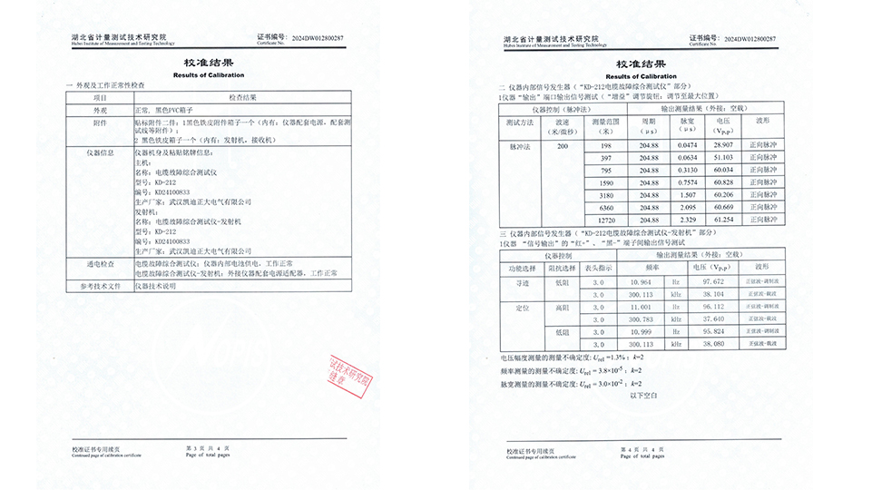 KD212電纜故障綜合測試儀嚴格遵循了JJG 840-2015《函數(shù)發(fā)生器》等相關校準標準,確保了測量結果的準確性和可靠性。在頻率測量方面,該測試儀覆蓋了從直流(DC)到500MHz的寬廣范圍,充分滿足了現(xiàn)代通信和電力系統(tǒng)中對高頻信號測試的需求。同時在電壓測量上,KD212也展現(xiàn)出了精度和穩(wěn)定性和優(yōu)勢,測量范圍可達(0.001~100)V,確保了在不同電壓等級下的電纜故障檢測都能得到準確無誤的結果。