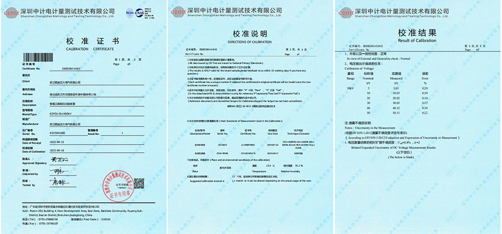 經(jīng)過此次校準(zhǔn),KDYDJ-5kVA50kV智能工頻耐壓試驗裝置的可靠性得到了進(jìn)一步驗證。其精確的電壓輸出、穩(wěn)定的性能測試結(jié)果以及專業(yè)的校準(zhǔn)服務(wù),都彰顯了武漢凱迪正大電氣有限公司在電力測試設(shè)備領(lǐng)域的地位。