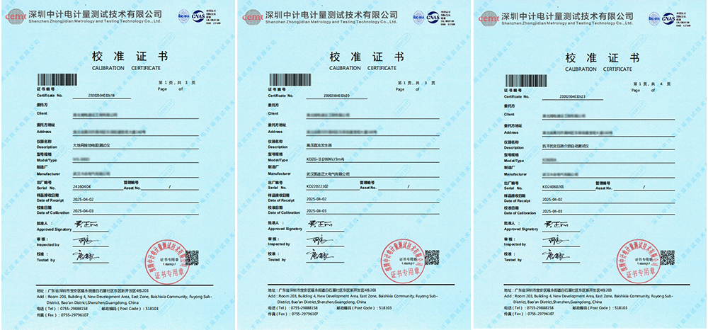 近日,湖北某電建設(shè)工程有限公批量采購武漢凱迪正大的近二十余套電力設(shè)備已經(jīng)全部順利通過深圳中計(jì)電計(jì)量測試技術(shù)有限公司的專業(yè)校準(zhǔn),并成功獲得了校準(zhǔn)證書。這一消息不僅彰顯了湖北某電建公司對(duì)武漢凱迪正大品牌的深度信任,也再次證明了武漢凱迪正大在電力設(shè)備制造領(lǐng)域的品質(zhì)與可靠實(shí)力。