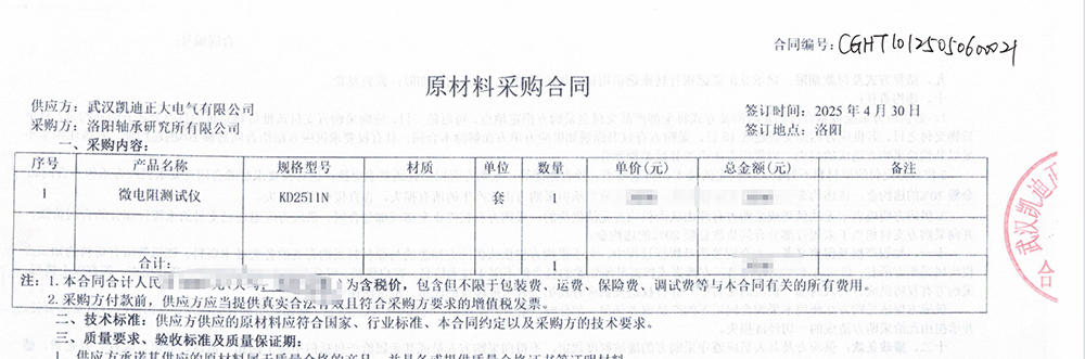 洛陽(yáng)軸承研究所有限公司信賴凱迪正大,采購(gòu)微電阻測(cè)試儀