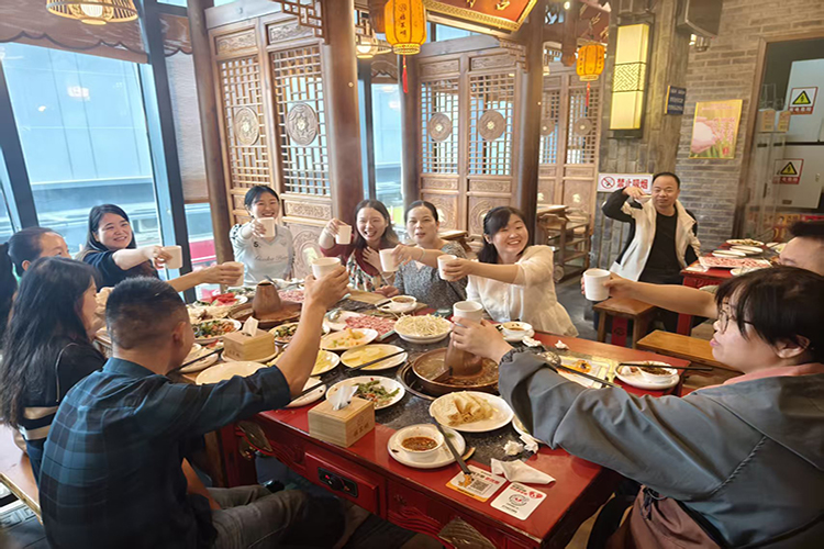 鮮嫩的羊肉、豐富的配菜陸續(xù)上桌,大家舉箸暢談,歡聲笑語與鍋底的沸騰聲交織。平日里在不同崗位忙碌的同事們,此刻圍坐一桌,卸下了工作的緊張,交流著生活中的趣事,暢談著對未來的展望。公司領(lǐng)導(dǎo)們也融入其中,親切地與每一桌的員工交流,向大家致以節(jié)日的問候,并感謝大家近期的辛勤努力。筷子起落間,不僅是美味的傳遞,更是情感的升溫與團隊的融合。這場羊肉火鍋宴,仿佛一個溫馨的大家庭聚會,暖了胃,更暖了心,將團隊凝聚力在這升騰的熱氣中推向新的高度。