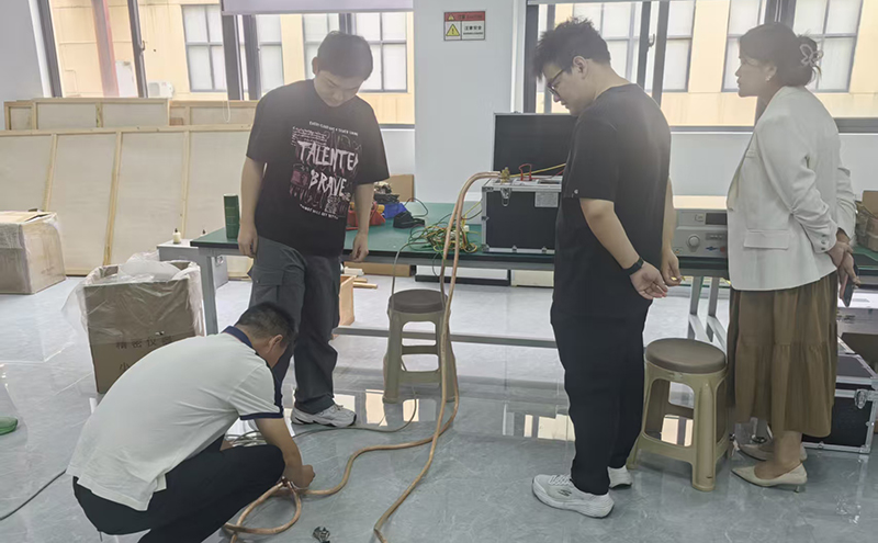 第二站:生產(chǎn)車間——見證制造匠心隨后,技術(shù)人員陪同嘉賓走進(jìn)生產(chǎn)車間。我們向來賓簡要說明了高壓諧振電抗器、超高壓耐壓測試儀等產(chǎn)品的組裝與調(diào)試。希望通過呈現(xiàn)有序的生產(chǎn)現(xiàn)場和嚴(yán)謹(jǐn)?shù)淖鳂I(yè)流程,讓代表團(tuán)感受到凱迪對(duì)產(chǎn)品品質(zhì)的切實(shí)追求與保障能力。