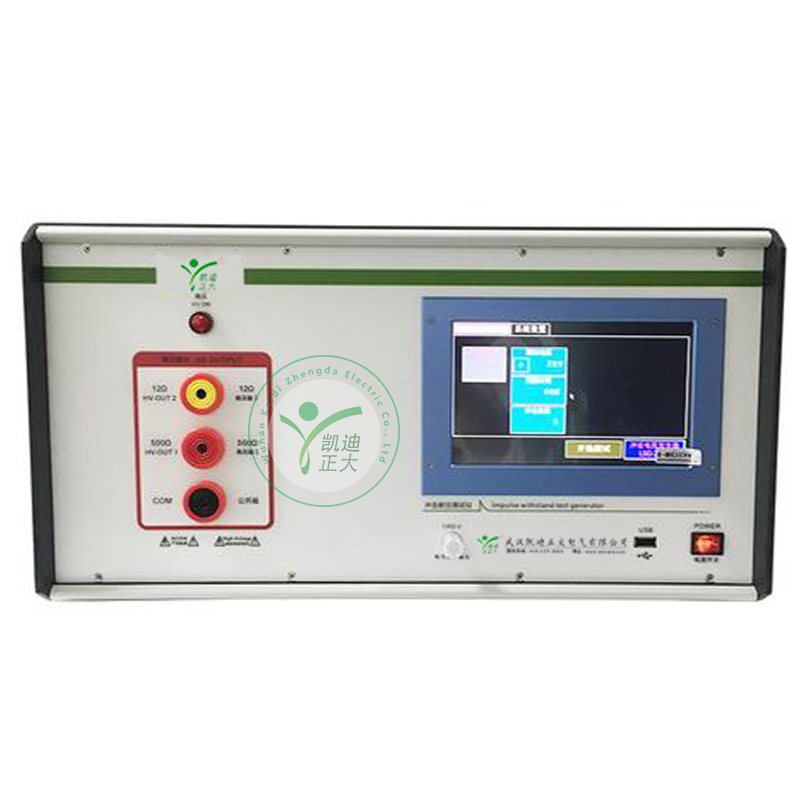 輸出電壓1-12.5kV可調(diào),波前時間1.2μs±30%,半峰時間50μs±20%,支持正、負及循環(huán)極性,阻抗可選12Ω或500Ω。