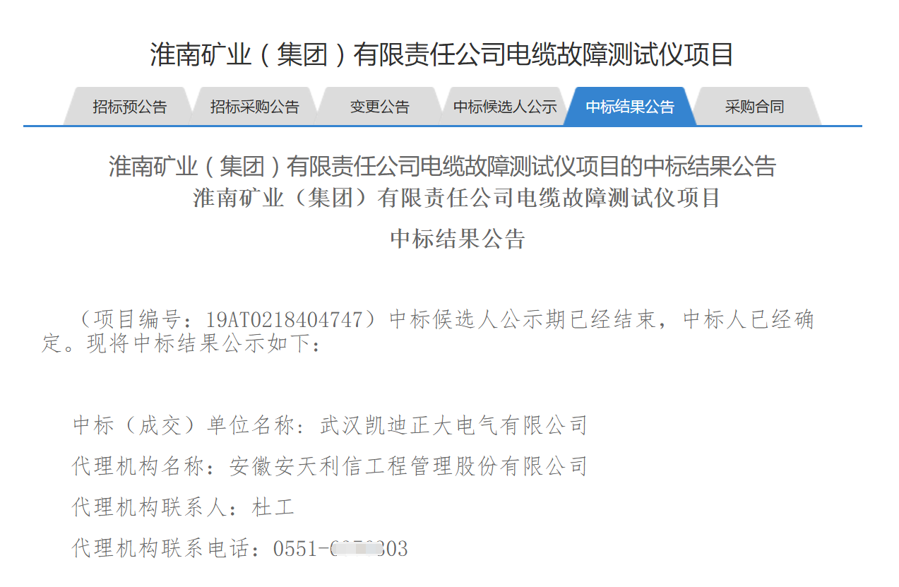 賀我司中標(biāo)淮南礦業(yè)(集團(tuán))有限責(zé)任公司電纜故障測(cè)試儀項(xiàng)目