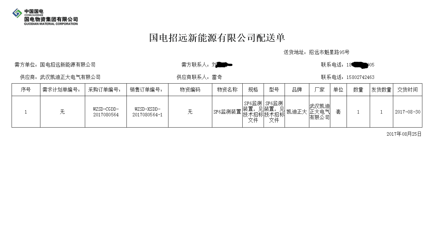 近期江城持續(xù)高溫,酷暑難耐。但絲毫沒有影響凱迪正大同仁的工作熱情,八月中旬,凱迪正大在國電招遠(yuǎn)新能源有限公司《35KV配電室加裝SF6監(jiān)測裝置項(xiàng)目》招標(biāo)采購中,憑借著良好的市場信譽(yù),可靠的產(chǎn)品質(zhì)量成功拿下此標(biāo)的。詢價(jià)單編號:WZSD-2017080285