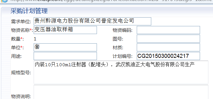 武漢凱迪正大電氣有限公司專(zhuān)業(yè)生產(chǎn)電力試驗(yàn)設(shè)備:KDJJC-80KV絕緣油介電強(qiáng)度測(cè)試儀、KDYDJ工頻耐壓試驗(yàn)裝置、KDZG-II直流高壓發(fā)生器、YDJ油浸式試驗(yàn)變壓器、GTB干式試驗(yàn)變壓器、KDJB微機(jī)繼電保護(hù)測(cè)試儀、KDHG互感器特性綜合測(cè)試儀、KD-216電纜故障測(cè)試儀、KDGK斷路器動(dòng)作特性測(cè)試儀、絕緣及接地電阻測(cè)試儀、六氟化硫氣體檢測(cè)儀等。其中變壓器檢測(cè)儀多次吸引中國(guó)華電集團(tuán)貴州黔源電力股份公司的招標(biāo)采購(gòu),此次招標(biāo)采購(gòu)指定武漢凱迪正大電氣股份有限公司生產(chǎn)的KDZD變壓器油取樣箱注射器10只100ml裝一套、KDZD變壓器油取樣箱廣口瓶10只250ml裝一套等電力試驗(yàn)設(shè)備配件材料。