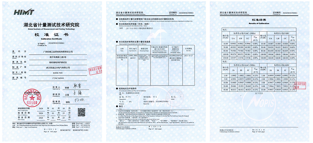 2024年1月22日,廣西機械工業(yè)研究院有限責任公司采購武漢凱迪正大的KDHG-A 互感器綜合測試儀 、KDHL-100A 回路電阻測試儀、KDJB-702C 微機繼電保護測試儀等電力儀器儀表,通過了湖北省計量測試技術研究院的嚴格校準。武漢凱迪正大作為電力儀器儀表的供應商,先后為國內(nèi)外多家企業(yè)提供所需的的試驗設備,產(chǎn)品在行業(yè)內(nèi)受到廣泛好評和推崇。